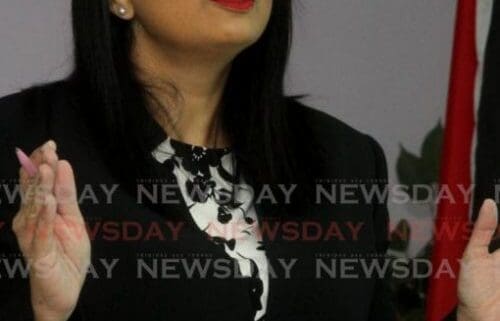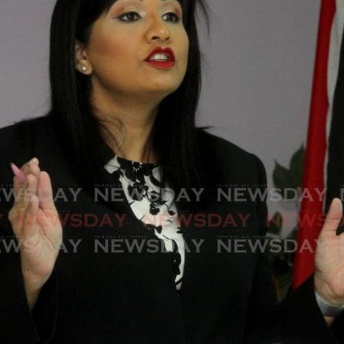 UNC Senator Jayanti Lutchmedial at the Opposition’s media briefing on Sunday. – Photo by Angelo Marcelle