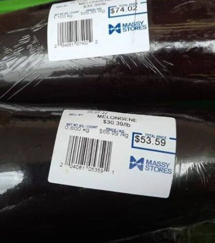 On Tuesday, a photo of a melongene for sale at a Massy Stores branch with a price tag of $75, was circulated on social media.