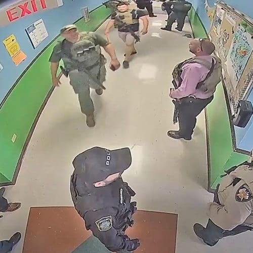 En la grabación se puede observar cómo los oficiales, que estaban fuertemente armados, se reúnen en los pasillos de la escuela sin iniciar de forma inmediata un operativo para reducir al tirador. Incluso se puede ver cómo un agente se aplica desinfectante en las manos mientras se escuchan ráfagas de disparos.