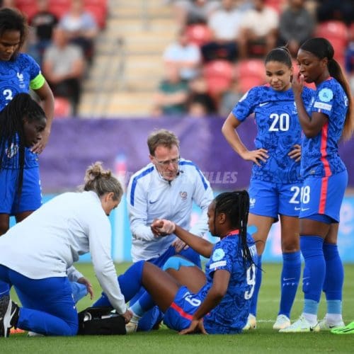 “Ça ne semble pas méchant mais elle a mal en tout cas”, a déclaré la sélectionneuse Corinne Diacre sur TF1 à la mi-temps.