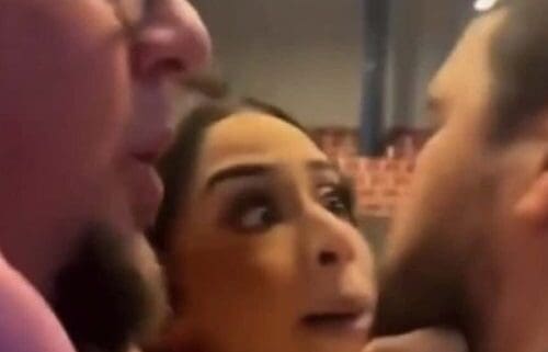 En el incidente se aprecia como varias personas, incluyendo su pareja, Andrea “La Peki” Ojeda, intentaban calmar al ex deportista.