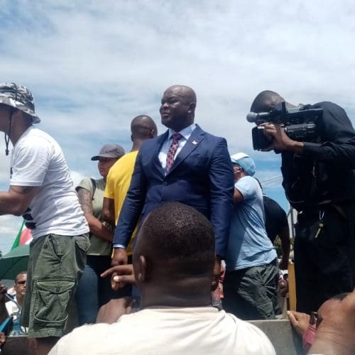 Tekst en beeld Valerie Fris PARAMARIBO — Al rond negen uur ‘s morgens verzamelden enkele actievoerders zich bij het kabinet