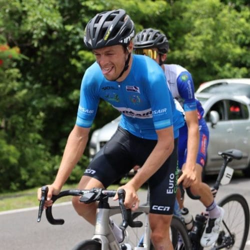 Le groupe de tête qui s’est formé au moment de son ascension avec Brandon Baret-Ajax (ERG), Fendley Boyeau (USL), Meving Gene (CSCA) et Philgy Palmiste (TA/UVN), est rejoint par Stéfan Bennett (ETPC), Matisse Julien et Robin Plamondon (PT U23), Célestin Guillon et Florian Rapiteau (Laval Cycling 53),Tom Donnenwirth (UVMG), Gabriel Reguero-Corral (RCC) et Axel Carnier (Martinique).