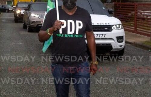 PDP political leader Watson Duke with a PDP flag during a walkabout in Roxborough/Argyle during the last THA election. –