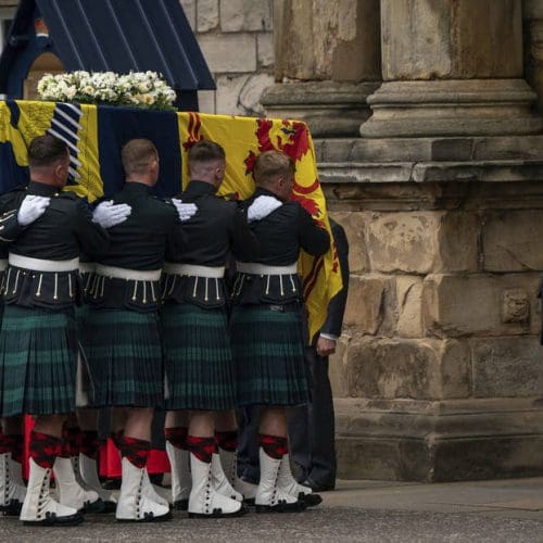 El ataúd de la reina Isabel II, que falleció el pasado jueves en el castillo de Balmoral a la edad de 96 años, ha sido trasladado este lunes al palacio de Holyroodhouse, situado en Edimburgo (Escocia, Reino Unido).