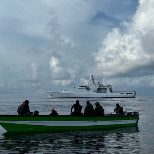 Unabes den becindario, Groningen a lansa su dos botonan rápido di intersepcion, esta e asina yama FRISC. Na momento cu e ocupantenan di e Speedboat tipo Go-fast sospechoso a nota e FRISC-nan, nan a purba huy y a cuminsa tira bultonan cu contrabanda den lama. Na final despues di un