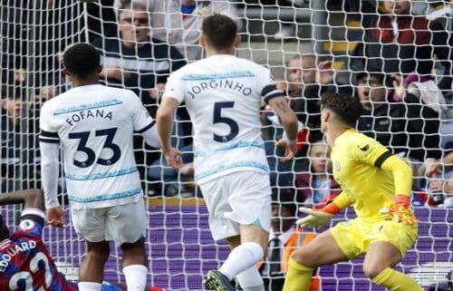 And at the other end, Eberechi Eze could not find the finishing touch on an attempt to double Palace’s advantage, firing the ball just wide.