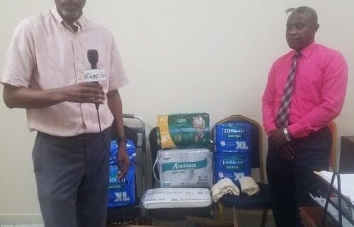 WILLIKIES, Antigua – Community service group, Sons and Daughters of Willikies, recently made a contribution of a quantity of adult pampers and a couple walkers to the Fiennes Institute.