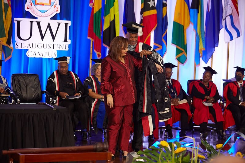 Principal Antoine, a trained soprano, ensured that the ceremony and reception featured the best of Trinidad and Tobago’s diverse musical talent. From The UWI Arts Steel, soprano Natalia Dopwell accompanied by The UWI Arts Chorale, UWI alumna Laurissa and Renelle Maharaj (both lawyers) on the violin and viola; alumnus Abhijit Anchortassoo with a classical Indian song, to Khion de Las and Daniel Ryan on pan and saxophone. The ceremony ended with Malick Folk Performers African Drummers and Tassa performing fusion music at the reception in the University Inn and Conference Centre. Calypsonian and Extempore Artiste Black Sage completed the lineup on the night.