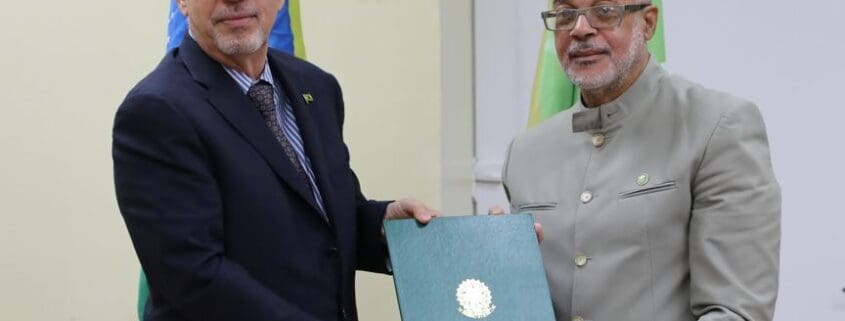 The Ambassador of the Federative Republic of Brazil to the Organisation of Eastern Caribbean States (OECS) Anuar Nahes presented his credentials to Dr. Didacus Jules, Director General of the OECS on Feb. 1.