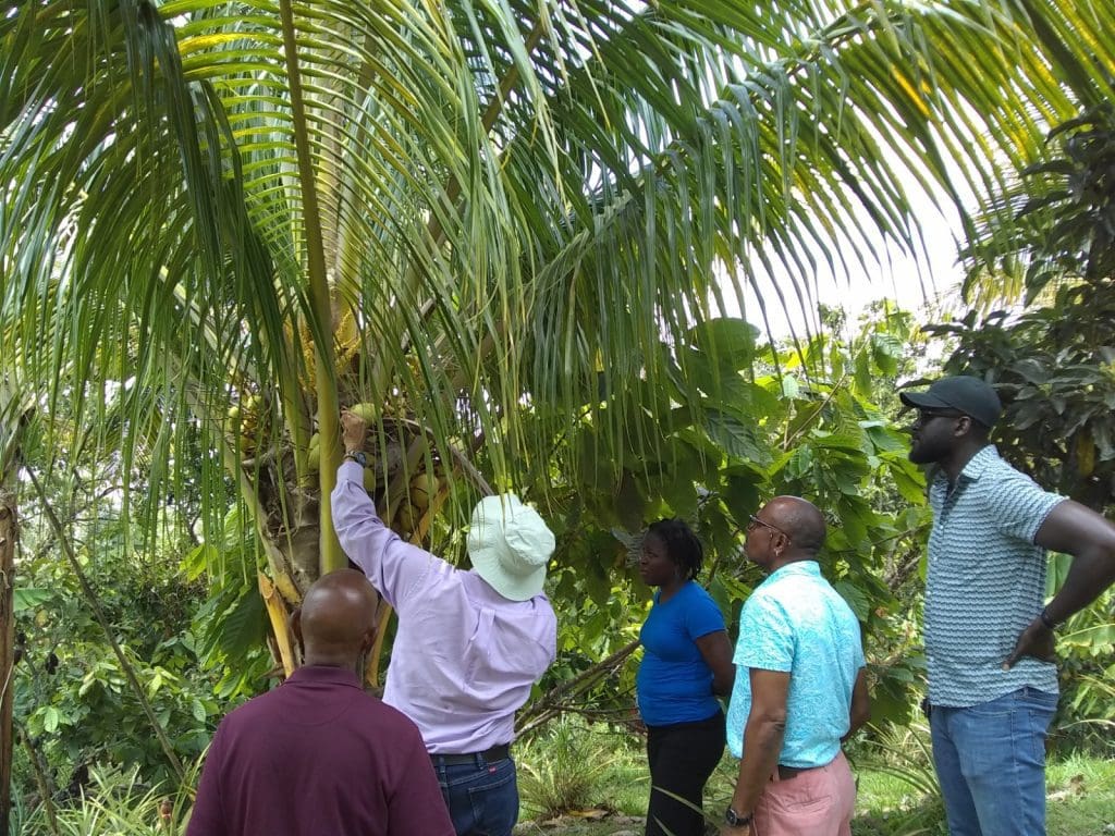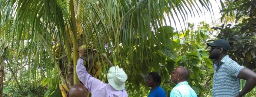 Some of the topics covered include, pre- and post- harvest handling, storage, propagation, and hand pollination, harvesting, pruning demonstrations, fertilizer application, integrated pest management, and intercropping options to support quality and sustainable coconut production. The training and recommendations offered will not only support production but will be a part of the necessary activities to strengthen the entire value chain over the coming months.