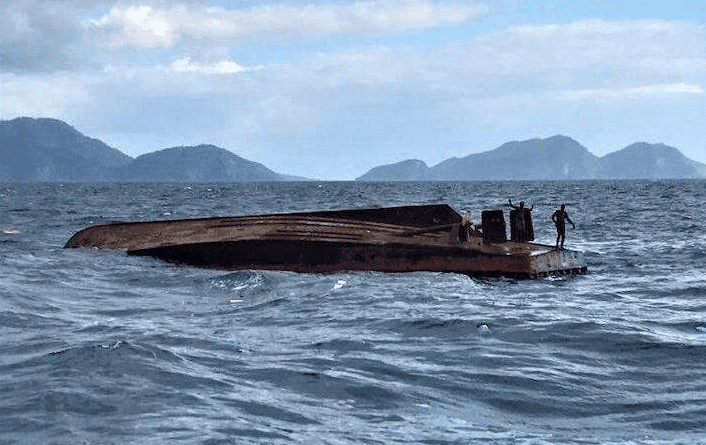 Reports say it was a passing luxury sailboat that initially spotted the distressed vessel and lent immediate help to those persons holding onto the hull to keep afloat and battling the rough waves.