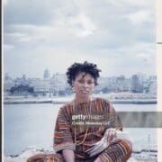 The late JoAnn Chesimard, aka Assata Shakur, holding the manuscript of her autobiography with Old Havana, Cuba, in the background on October 7, 1987. (Photo by Ozier Muhammad/Newsday RM via Getty Images)