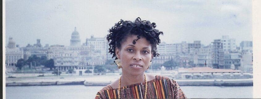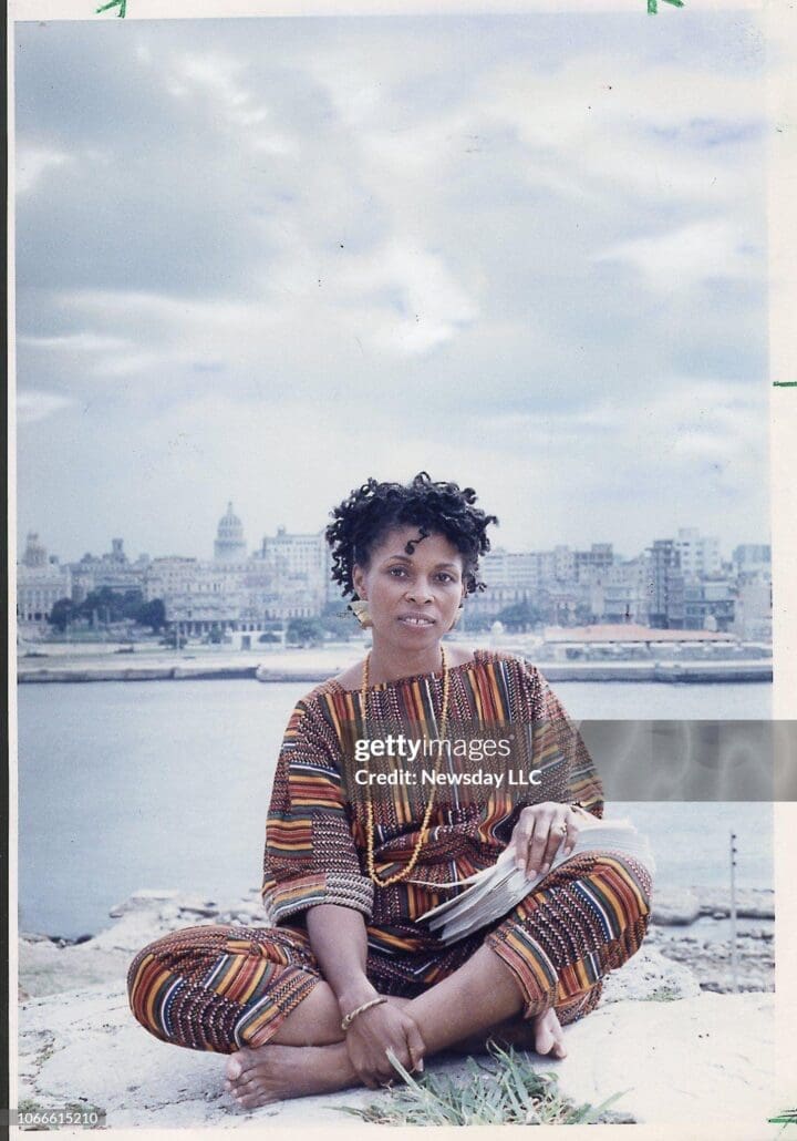 The late JoAnn Chesimard, aka Assata Shakur, holding the manuscript of her autobiography with Old Havana, Cuba, in the background on October 7, 1987. (Photo by Ozier Muhammad/Newsday RM via Getty Images)