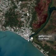 Vantor “before” satellite imagery shows a coastal town along the Black River, Jamaica. (Satellite image (c) 2025 Vantor)