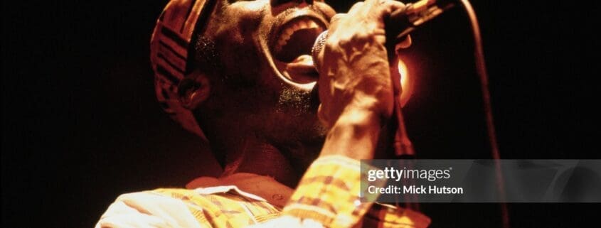 Jamaican singer, musician and actor Jimmy Cliff, his head back as he sings in concert, 1990. (Photo by Mick Hutson/Redferns/Hulton Archive/Getty Images)