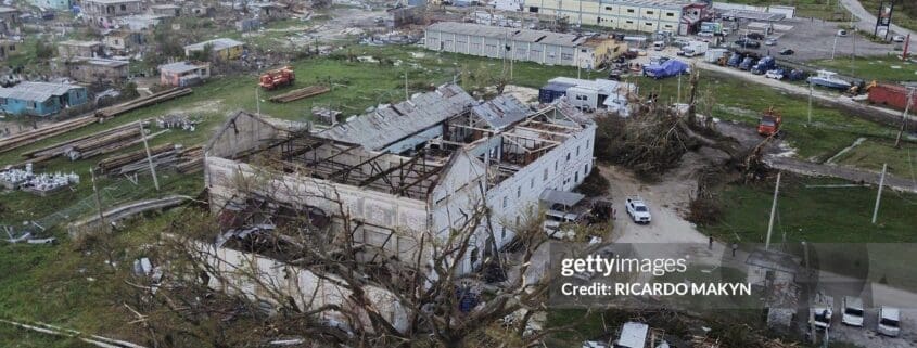 FLASHBACK – An aerial view shows damaged buildings in the aftermath of Hurricane Melissa, in Westmoreland, Jamaica, on October 31, 2025. At least 19 people in Jamaica have died as a result of Hurricane Melissa which devastated the island nation when it roared ashore this week, a government minister told news outlets late October 31. (Photo by RICARDO MAKYN/AFP via Getty Images)