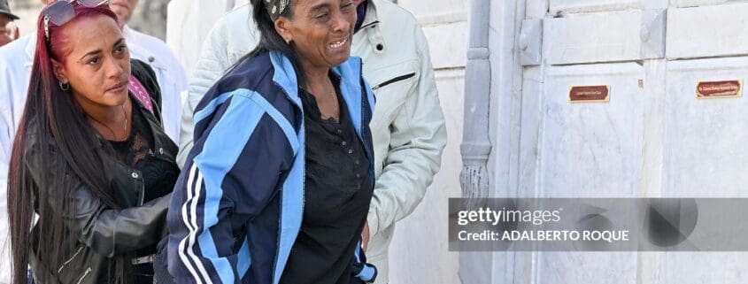 Relatives of the 32 Cuban soldiers killed during the US incursion in Venezuela attend their funeral at Colon cemetery in Havana on January 16, 2026. The capture by US forces of Venezuelan leader Nicolas Maduro on January 3, 2026, and the killing in the operation of 32 Cubans assigned to protect him represent a major blow for the island’s revered intelligence services, experts say. (Photo by ADALBERTO ROQUE / AFP via Getty Images)