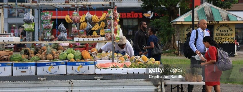 People purchase fruit from a stand on November 05, 2025, in Port of Spain, Trinidad and Tobago. Reports indicate that the United States military is expanding its presence in the Caribbean as speculation continues about possible strikes against targets inside Venezuela. The Port of Spain is approximately 7 miles from the coast of Venezuela at its closest point (Photo by Joe Raedle/Getty Images)