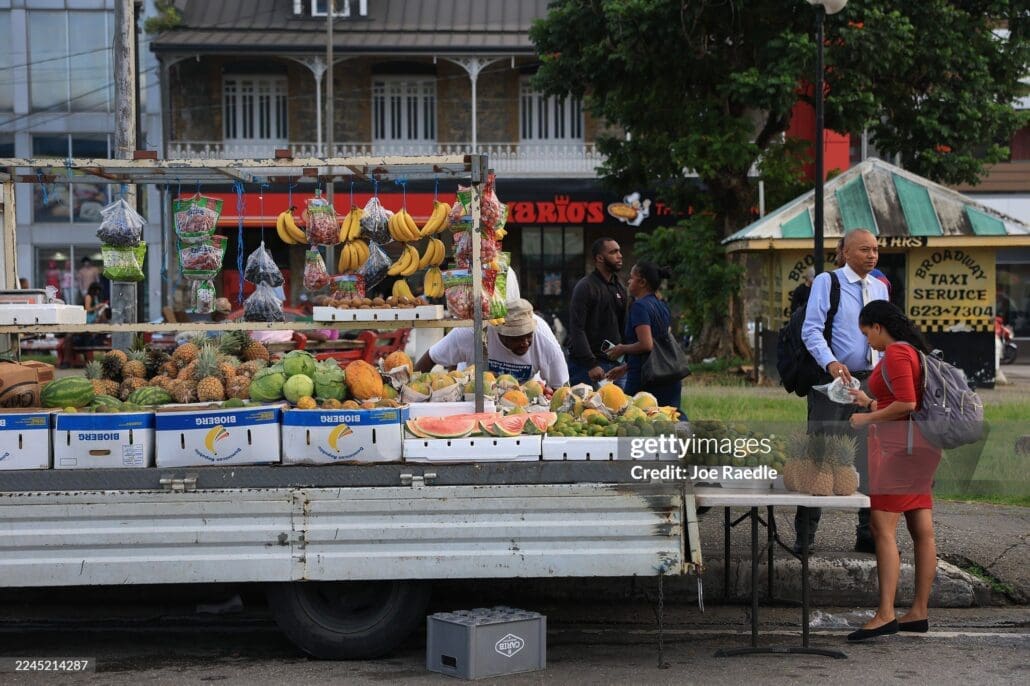 People purchase fruit from a stand on November 05, 2025, in Port of Spain, Trinidad and Tobago. Reports indicate that the United States military is expanding its presence in the Caribbean as speculation continues about possible strikes against targets inside Venezuela. The Port of Spain is approximately 7 miles from the coast of Venezuela at its closest point (Photo by Joe Raedle/Getty Images)