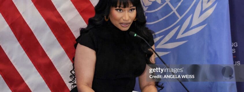 FLASHBACK – Trinidadian-US rapper Nicki Minaj speaks during the panel discussion “Combatting Religious Violence and the Killing of Christians in Nigeria” at the US Mission to the United Nations in New York City, on November 18, 2025. (Photo by ANGELA WEISS / AFP) (Photo by ANGELA WEISS/AFP via Getty Images)