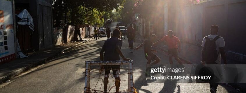 People play football in Delmas, Port-au-Prince, Haiti, on March 22, 2026. (Photo by Clarens SIFFROY / AFP via Getty Images)
