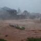 A flooded street is seen in St. Catherine, Jamaica, on October 28, 2025. Ferocious winds and torrential rain tore into Jamaica Tuesday as Hurricane Melissa made landfall, the worst storm ever to strike the island nation and one of the most powerful hurricanes on record. The extremely violent Category 5 system was still crawling across the Caribbean, promising catastrophic floods and life-threatening conditions as maximum sustained winds reached a staggering 185 miles per hour (295 kilometers per hour). (Photo by RICARDO MAKYN/AFP via Getty Images)